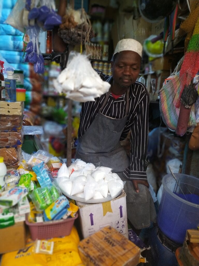Unfortunately it is not, of course 500 is lacking. But his conclusion is apparently different. He adds 300. Then he counts again. To his surprise, he still does not have 3550 in hand. Something is still missing. He thinks again, and adds 150... the process repeats again and again. I leave the shop after fifteen minutes of counting, holding a stack of about 40 banknotes of all kinds of denominations, representing 3550 dalasis.