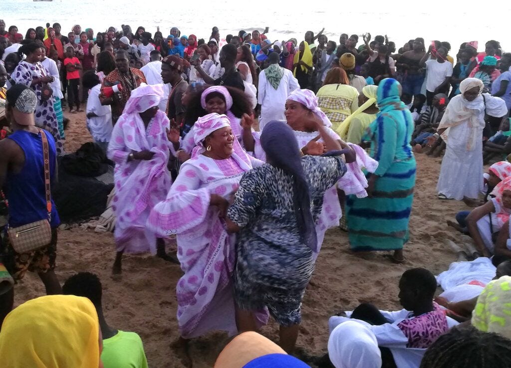 Joal, Senegal: with my friends Amadou and Aisha, we run to the beach to catch the sunset. We are on time: the Sun is still up. To our right, a casual football match. To our left, something unexpected: a dense circle of two hundred people. Music can be heard. “What is it?”, I ask. “I don’t know, let’s approach” says Amadou. We come closer. People let us in, but we still don’t understand what is happening.