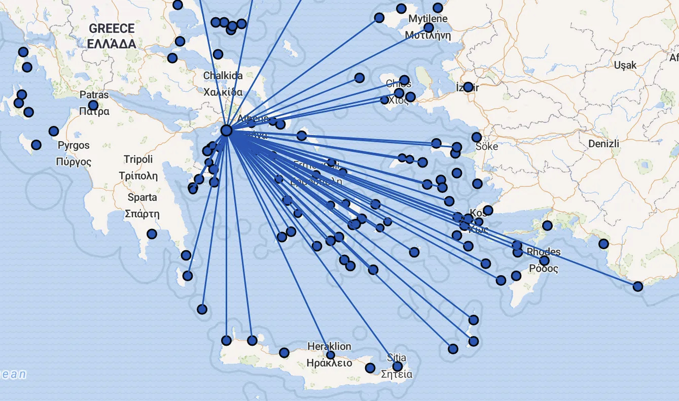 To grasp the meaning of Piraeus, look at the map of Greek ferry lines.