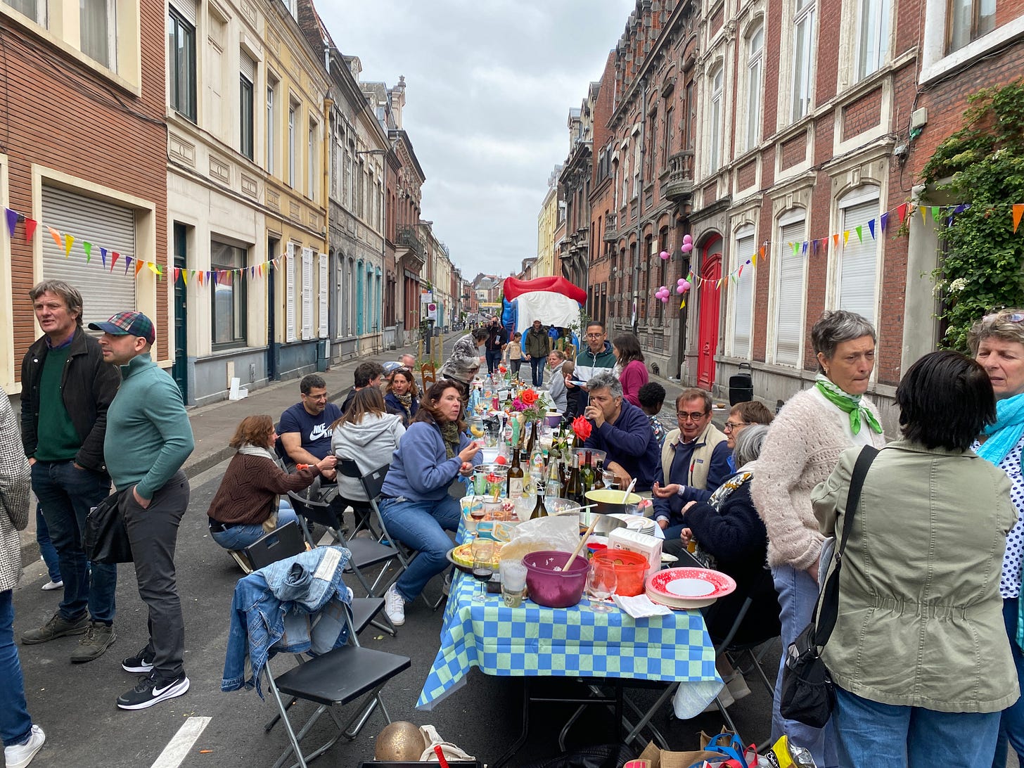 This Sunday afternoon. The normally inconspicuous Rue Inkerman is closed to traffic. Neighbors have laid out tables, which quickly got filled with food. It’s the Fête des Voisins - neighbor’s party, organized for no reason except simply feeling like it.