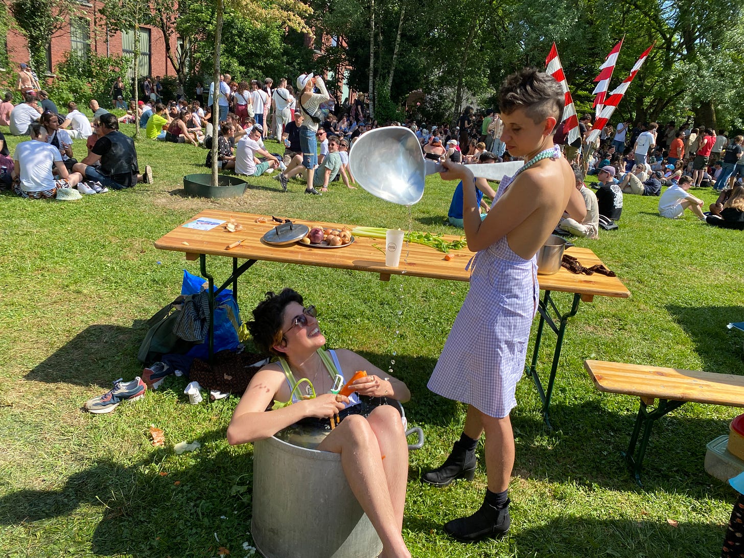 Fête des Voisins often go by different names. A beautiful festival of sharing happens every May in Lille: Fête de la Soupe. Anyone can bring a pot of soup and offer it to strangers. This unfolds into colorful carnival. Because whenever the context allows, the French love to dress up and act crazy. My favourite stand was a soup made of a human (bottommost picture below).